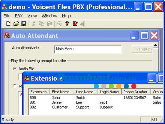 - Voicent Flex PBX chỉ phải mua một lần. Không cần phí cài đặt, không có hóa đơn định kỳ hàng tháng và không có giới hạn sử dụng. Không yêu cầu phần cứng đắt tiền. Toàn bộ hệ thống sẽ hoạt động trên máy tính của bạn và kết nối Internet.