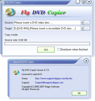 Fly DVD Copier chỉ có đúng 2 chức năng chính là sao chép nội dung của đĩa DVD này sang đĩa DVD khác và chép DVD vào đĩa cứng nhưng vẫn giữ nguyên mọi tính năng như thuyết minh, phụ đề.