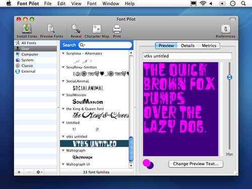 Sử dụng công cụ quản lý font cao cấp, Font Pilot sẽ “thâm nhập” vào hệ thống của bạn và loại bỏ các vấn đề về font chữ. Bản quyền, license, miêu tả, tên viết tắt, kích cỡ file, địa điểm,...