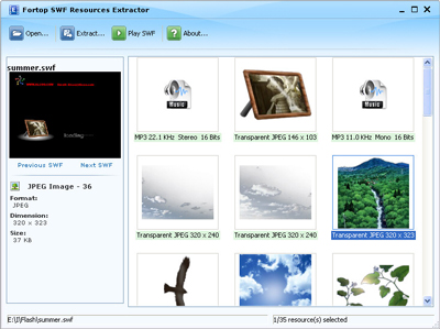 Fortop SWF Resources Extractor là một phần mềm miễn phí giúp bạn trích xuất hình ảnh, âm thanh từ các file Flash có định dạng swf hoặc exe.