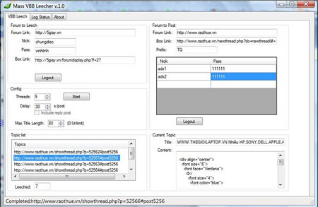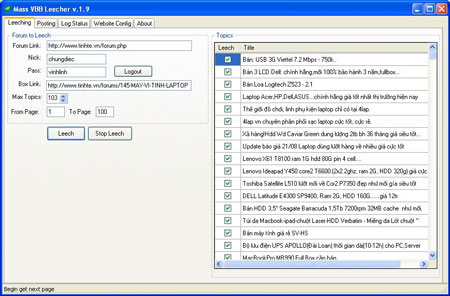 Forum Leecher VBB Leecher 3.0 là phần mềm tự động kéo bài.