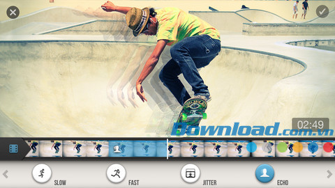 Sử dụng các hiệu ứng trực tiếp như hiệu ứng chuyển động chậm, chuyển tiếp nhanh, vang dội...