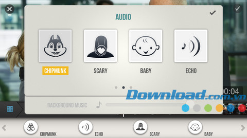 Chuyển giọng nói của bạn thành giọng sóc chuột, giọng sợ hãi, giọng em bé hoặc bổ sung một nhạc nền tùy chỉnh từ thư viện nhạc hệ thống.
