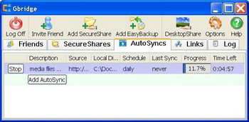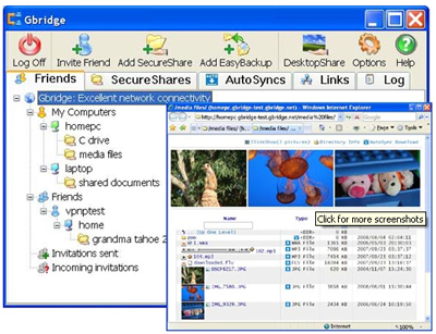 Gbridge cho phép bạn gửi file dung lượng lớn, chia sẻ desktop, tạo slide ảnh từ thư mục, chia sẻ cho máy tính khác, và thiết lập sao lưu định kỳ dữ liệu giữa các máy tính đã kết nối.