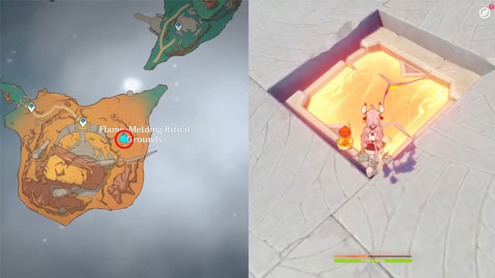 Đi đến điểm dịch chuyển xa nhất trong khu Tế Đàn Tụ Lửa và nhập vào một Tatankasaurus gần đó, sau đó phá vỡ khối Pulverite ở phía đông nam. Một kẻ địch sẽ xuất hiện và sau khi đánh bại nó, game thủ sẽ nhận được một rương thường.
