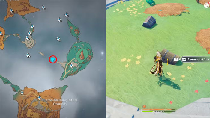 Từ vị trí vừa rồi, kích hoạt Tượng Rồng, nó sẽ đưa game thủ lên đỉnh ngọn núi tại Tế Đàn Tụ Lửa. Nhập vào Qucusaur và bay về phía bắc cho đến khi bạn thấy một hòn đảo đang lơ lửng. Trên hòn đảo này có ba rương báu đang chờ được thu thập.