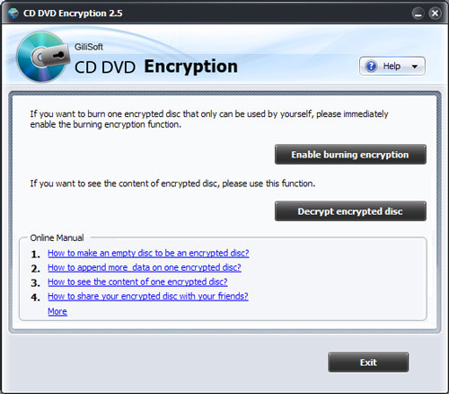 Với sự hỗ trợ của GiliSoft CD DVD Encryption, bạn có thể ghi đĩa mã hóa cùng mật khẩu bảo vệ. Phần mềm này hỗ trợ hầu hết các phần mềm ghi đĩa, nếu bạn có một bản ghi và một phần mềm ghi đĩa, và bạn muốn ghi đĩa mã hóa, hãy sử dụng phần mềm này.
