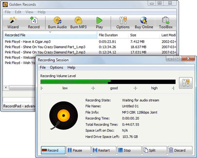 Golden Records Vinyl to CD Converter có đầy đủ các tính năng CD-Burner, nó mã hóa vào tập tin mp3 hoặc sóng với khả năng thêm thẻ mp3 ID vào các tập tin chuyển đổi. Tự động hiss và giảm tiếng ồn.