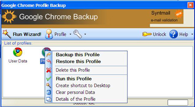 Nếu bạn đã sử dụng Google Chrome thì đều biết thật khó để quản lý các profile (lưu trữ các dữ liệu cá nhân như history, bookmark…) khi bạn muốn cài đặt lại Chrome hoặc di chuyển sang một máy tính khác. Giờ đây, với ứng dụng nhỏ gọn Google Chrome backup bạn có thể tạo, sao lưu, phục hồi và quản lý các profile của Google Chrome. Công cụ cũng hỗ trợ Chromium (một phiên bản của Google Chrome).