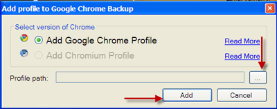 Bạn chỉ việc trỏ tới đường dẫn tới thư mục chứa profile bạn cần thêm vào Google Chrome Backup.
