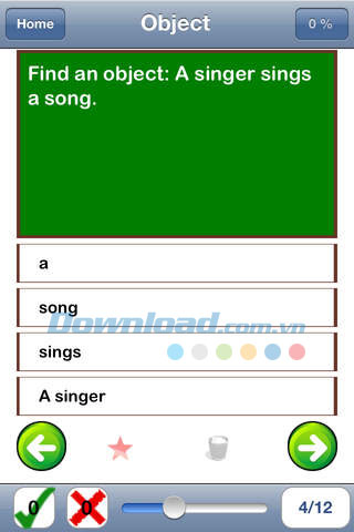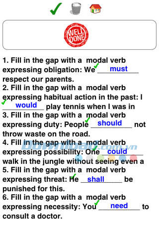 Câu hỏi sẽ được trình bày theo cách thức phù hợp để sinh viên có thể hiểu nguyên lý ngữ pháp cơ bản. Nhà phát hành khuyến khích người dùng lựa chọn chế độ Missed để học ngữ pháp hiệu quả nhất. Phần trăm tiến độ cũng được hiển thị cho từng chủ đề.