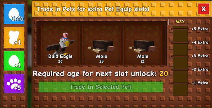 Mọi người có thể mở khóa ô thú mới bằng Robux hoặc bằng cách bán thú cưng già tại Egg Shop. Để thực hiện, hãy giữ thú đã có tuổi rồi đến gặp NPC Raphael, chọn I want to sell my pet để đổi lấy ô mới. Người chơi có thể tham khảo Grow A Garden: Cách tăng slot trang bị trứng và thú cưng để biết chi tiết từng bước.