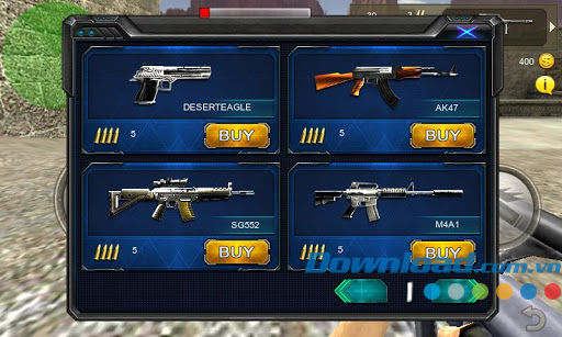 Game cung cấp 9 loại vũ khí miễn phí như Desert Eagle, AK47, SG552, M4A1, MP5, AUG, P90, M3, MAC10 để người chơi lựa chọn và chiến đấu.