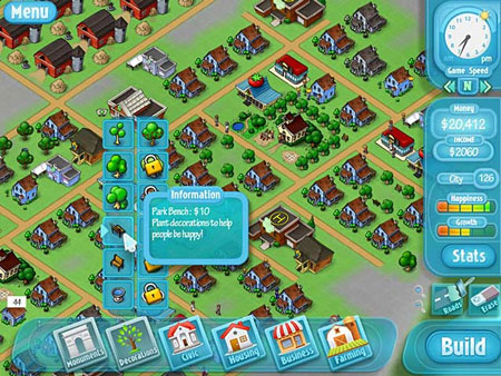 HappyVille: Quest for Utopia là một trò chơi mô phỏng xây dựng thành phố nơi bạn thiết kế và phát triển thành phố công dân của mình.