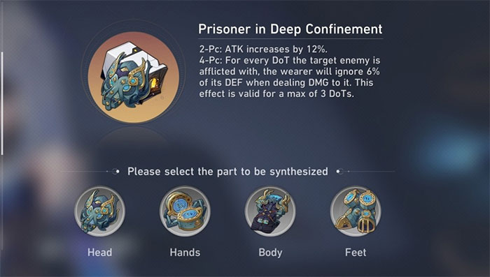 Là một đơn vị Nihility trong Honkai: Star Rail, Black Swan dựa vào debuff của mình, đặc biệt là DoT, để đánh bại đối thủ. Để làm được điều đó, tốt nhất game thủ nên build Black Swan với 4 mảnh Prisoner in Deep Confinement. Nó tăng ATK của Black Swan lên 12% và cho phép cô bỏ qua DEF của kẻ thù dựa trên số DoT trên chúng. Black Swan rất dễ gây ra những DoT đó nên cô ấy có thể tối đa hóa hiệu ứng ngay lập tức.