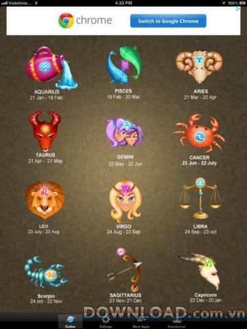 Xem tử vi Horoscope cùng những thông tin đầy đủ và thú vị với phần mềm Horoscope 2012 – HD for iPad.