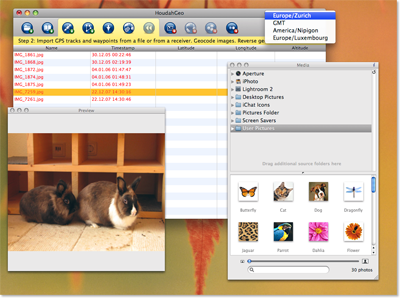 HoudahGeo có thể trực tiếp thu thập thông tin qua GPS hoặc ghi lại các thông số EXIF/XMP/IPTC với nhiều định dạng ảnh như JPEG, RAW, DNG, CR2... Những thông tin này có thể dễ dàng truy cập bởi các phần mềm ứng dụng hoặc các ứng dụng trực tuyến như iPhoto, Aperture, Lightroom, Panoramio, Flickr, ...