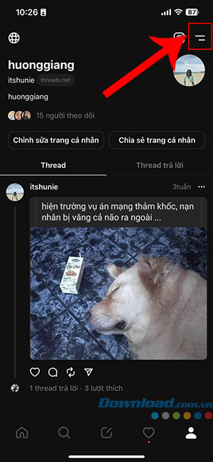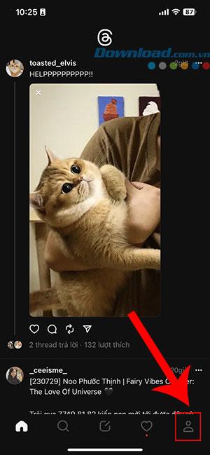 Bước 1: Mở ứng dụng Threads trên thiết bị và chạm vào biểu tượng profile ở góc dưới cùng bên trái để truy cập trang cá nhân Threads.