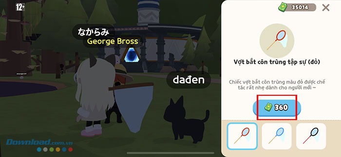 Bước 4: Sau khi nói chuyện với NPC, nhấn nút Mua Vợt bắt côn trùng.