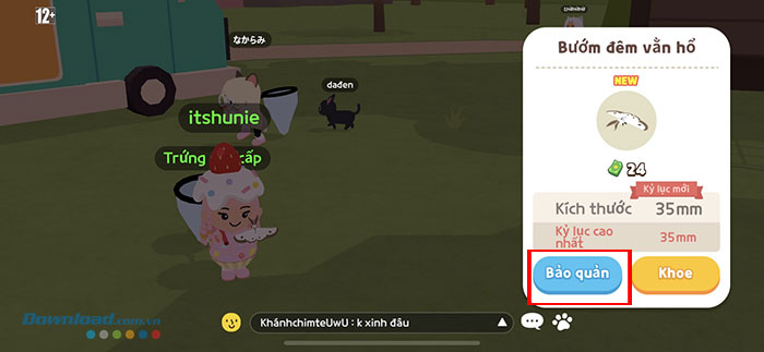 Bước 8: Sau khi bắt thành công một con vật, game thủ có thể chọn Khoe hoặc Bảo quản chúng.