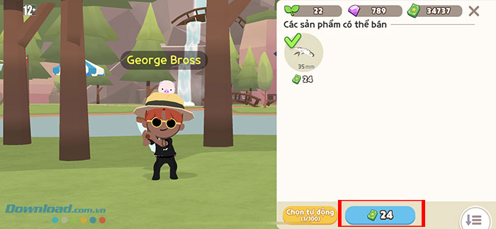 Mỗi loài côn trùng sẽ có giá khác nhau và người chơi cần nhấn vào số tiền để xác nhận bán chúng.