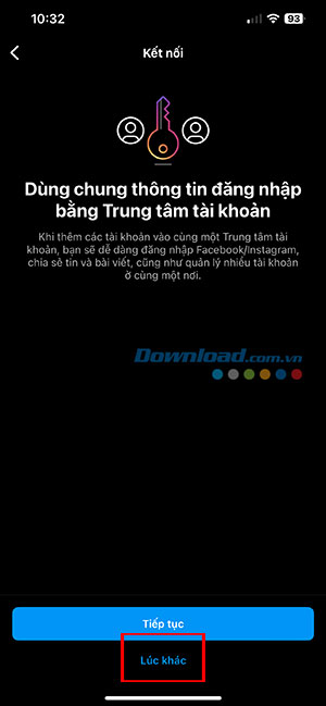 Nếu không muốn liên kết Trang Facebook, chọn Lúc khác.