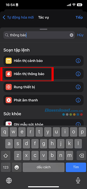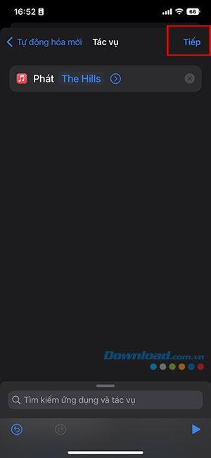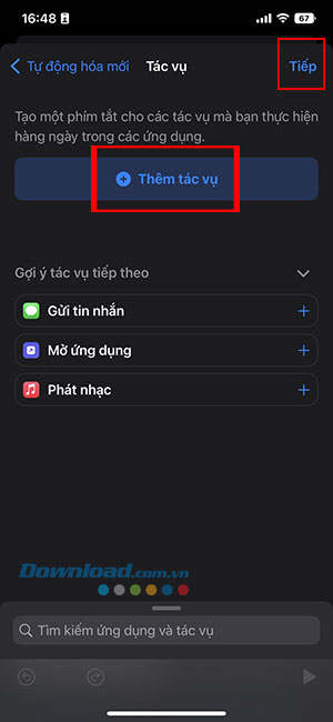 Bước 6: Bây giờ, người dùng cần xác định iPhone của mình sẽ làm gì khi mức pin đạt 100%. Nhấn vào Thêm tác vụ và tìm kiếm tác vụ thích hợp.