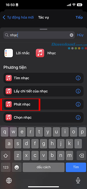 Bước 1: Tìm kiếm tác vụ Phát nhạc.