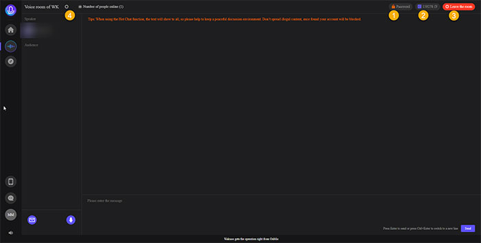 Mọi người cũng có thể đặt mật khẩu cho phòng chat thoại của mình. Nếu đặt mật khẩu thì phòng trò chuyện thoại sẽ ở trạng thái không công khai, và cần chia sẻ mật khẩu này với bạn bè để họ có thể vào phòng chat thoại này.