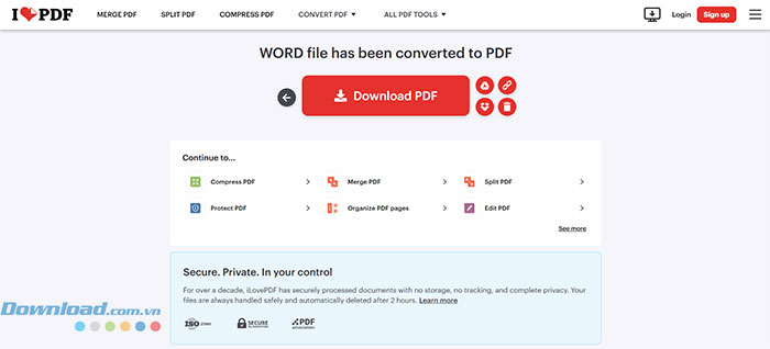 Khi hoàn tất, người dùng có thể tải file PDF đã chỉnh sửa trên iLovePDF về thiết bị lưu file lên Google Drive hoặc Dropbox.