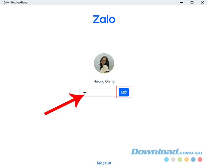 Bước 4: Để khóa màn hình Zalo trên PC tạm thời, nhấn phím tắt Ctrl + L. Giao diện Zalo trên máy tính sẽ khóa lại và yêu cầu nhập mã khóa, sau đó nhấn Mở để mở lại màn hình.