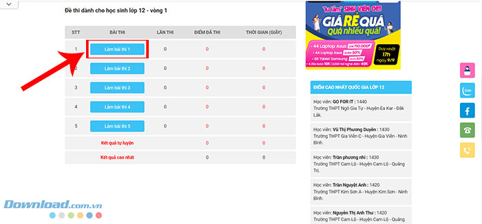 Bước 5: Bắt đầu làm bài thi và xem kết quả tự luyện của mình sau khi hoàn thành.