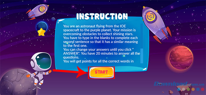 Bước 4: Các em sẽ được điều hướng tới bài thi tự luyện IOE. Sau khi đọc kỹ phần Hướng dẫn làm bài tự luyện (Instruction), hãy nhấn Start để bắt đầu làm bài.