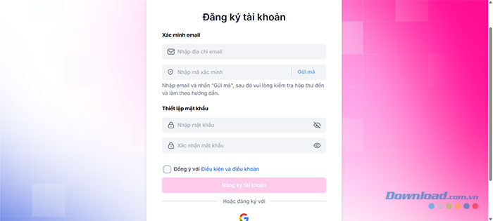 Mọi người cũng có thể lựa chọn Đăng nhập hoặc Đăng ký bằng tài khoản Google để tiết kiệm thời gian. Tuy nhiên, khi lưu lượng truy cập cao, tài khoản đăng nhập bằng phương thức này có thể thoát ra.