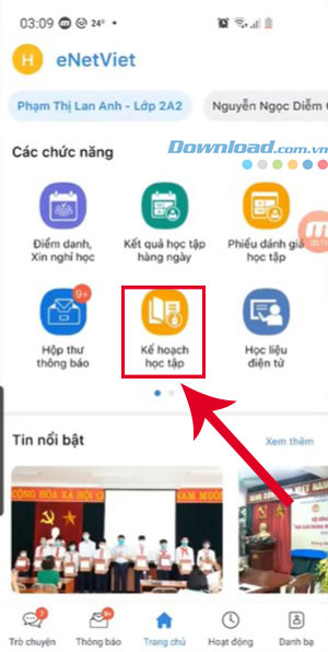 Bước 1: Mở ứng dụng eNetViet trên thiết bị và nhấn vào Kế hoạch học tập trong mục Các chức năng.