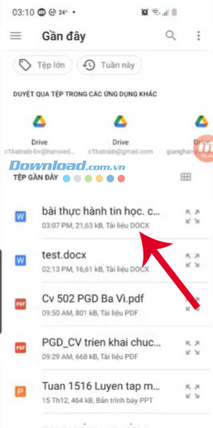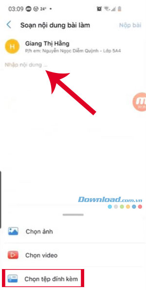 Bước 4: Nếu chọn Tệp đính kèm, học sinh có thể chọn tệp trong thiết bị hoặc qua ứng dụng khác như Google Drive.