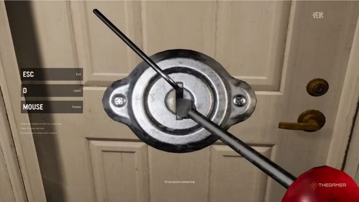 Nếu chọn kỹ năng Lockpicking khi tạo nhân vật, mọi người sẽ có chỉ số thưởng giúp mở khóa dễ hơn. Nếu dùng hết lockpick hoặc thoát màn hình mở khóa giữa chừng, khóa sẽ reset và vị trí chính xác sẽ thay đổi. Vì vậy, đừng thử khóa khó khi chưa có nhiều lockpick dự phòng.