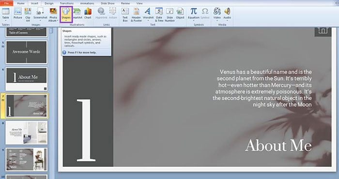 Bước 1: Nhấp vào tab Insert ở đầu bản trình bày.