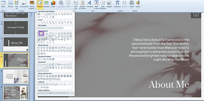 Bước 2: Nhấp vào Shapes trong nhóm Illustrations.