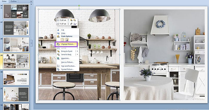 Trong trường hợp đang làm việc với một mẫu có sẵn, người dùng sẽ cần một nút khác - Change Picture, truy cập bằng cách nhấp chuột phải vào hình ảnh muốn thay thế.