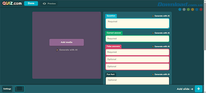 Bước 4: Nhập câu hỏi, thêm tùy chọn trả lời và đánh dấu câu trả lời đúng. Mọi người cũng có thể thêm hình ảnh, âm thanh nếu cần bằng cách nhấn vào Add media.