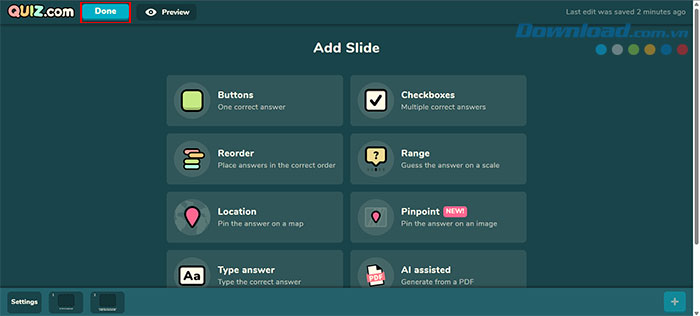 Bước 3: Tại trang Add Slide, chọn loại câu hỏi bao gồm: