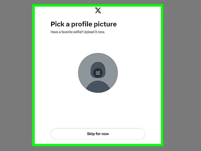 Bước 11: Nhấn vào biểu tượng máy ảnh để tải ảnh từ máy tính, hoặc nhấp Skip for now nếu muốn thực hiện sau.