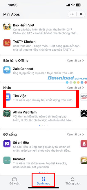 Bước 2: Truy cập Danh mục và chọn Tìm việc trong danh sách Khác.