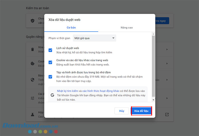 Bước 3: Từ tab mới xuất hiện, chọn Xóa dữ liệu duyệt web ở bên trái.