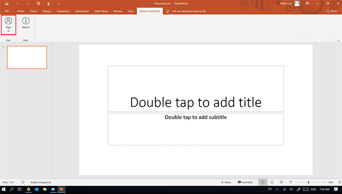 Bước 6: Cuối cùng, mở Powerpoint và đăng nhập vào ClassPoint sử dụng tài khoản đã đăng ký hoặc tham khảo cách đăng ký tài khoản ClassPoint bên dưới.