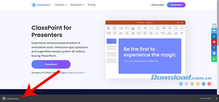 Bước 1: Nhấn vào nút Tải về ClassPoint 2.0 dưới đây.