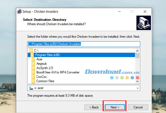 Bước 5: Chọn thư mục lưu cài đặt trò chơi và nhấn Next.
