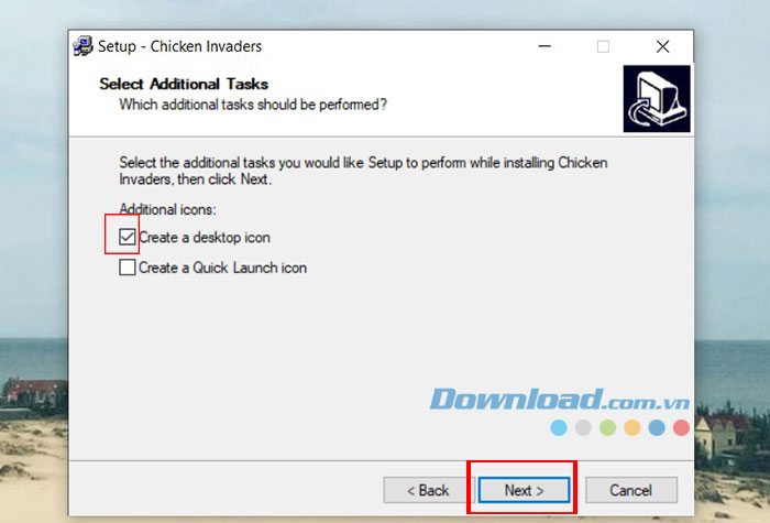Bước 6: Click vào Create a desktop icon hoặc Create a Quick Launch icon và nhấn Next.