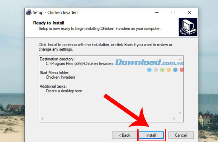 Bước 7: Xác nhận lại thông tin cài đặt và nhấn Install để bắt đầu. Nếu muốn thay đổi cài đặt nào, hãy nhấn Back để quay trở lại.